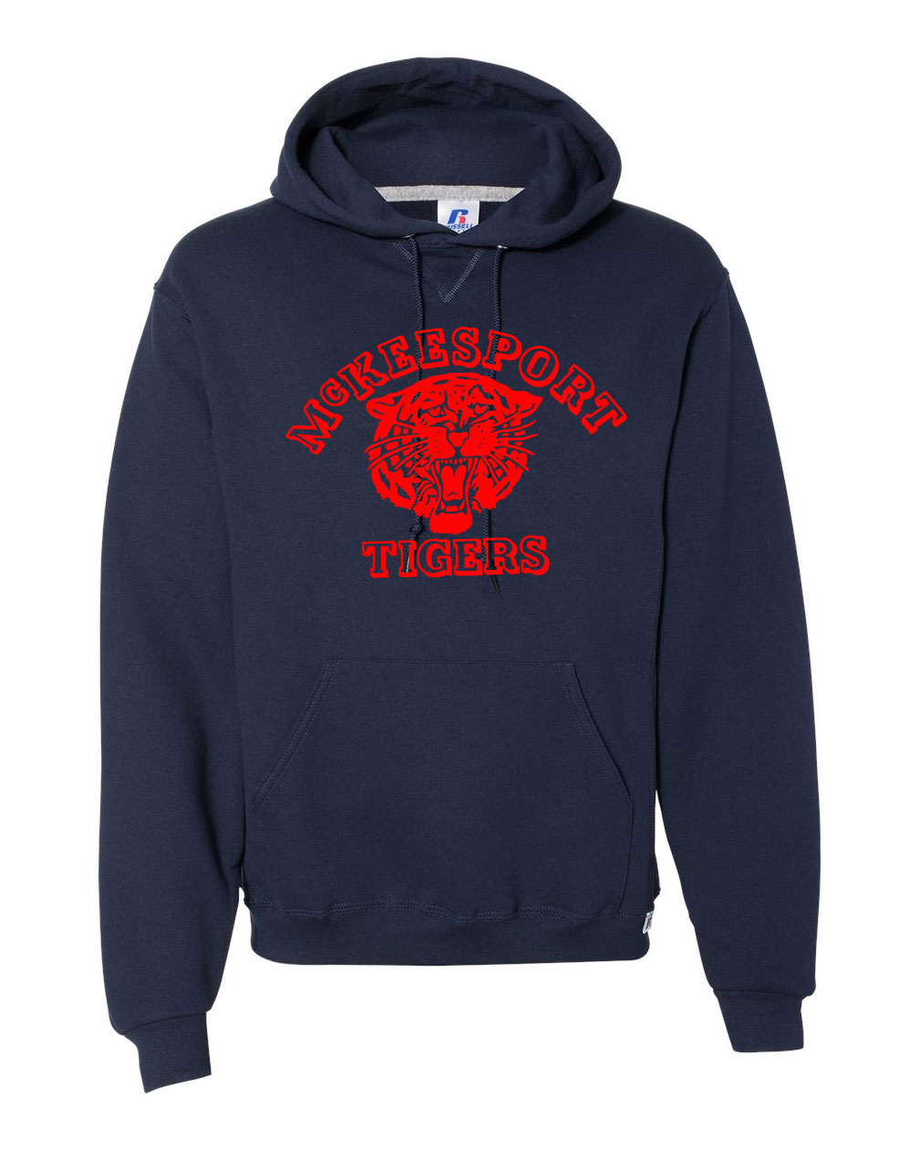 Russell Athletic brand hoodie with vintage McKeesport Tigers flocked logo