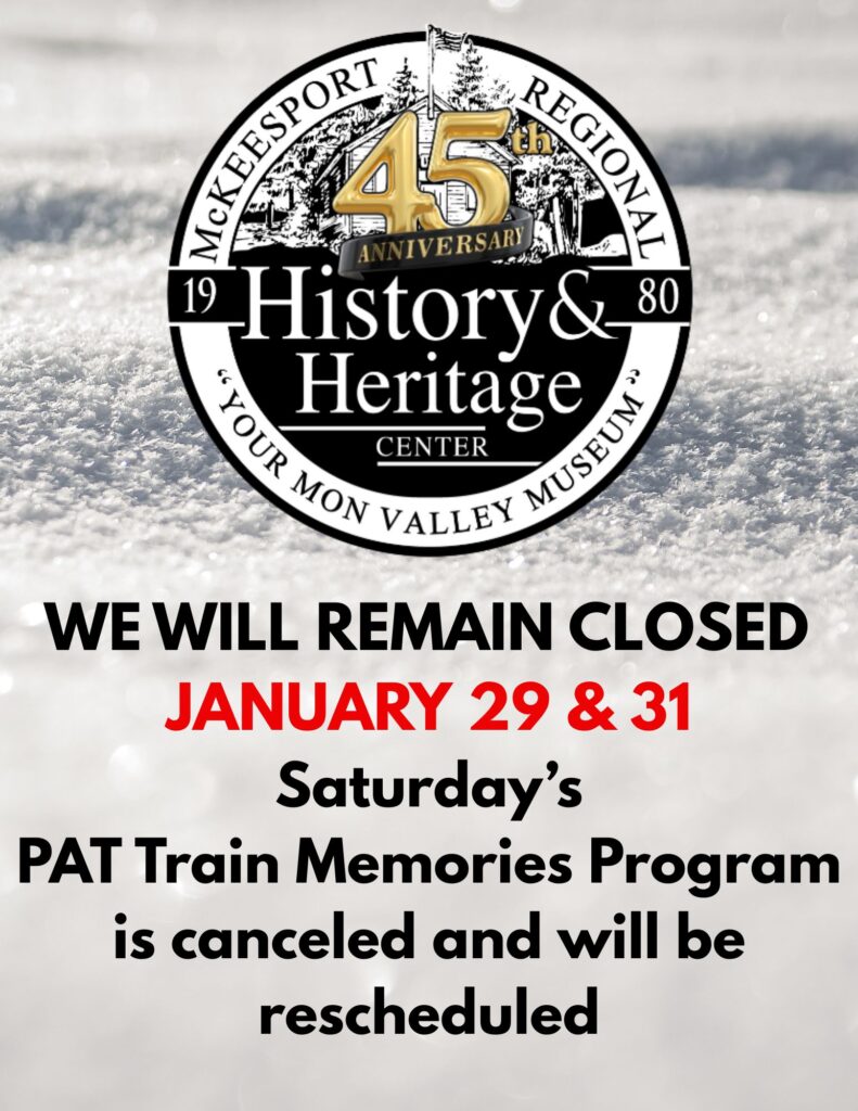 DUE TO CONTINUED INCLEMENT WEATHER, THE HERITAGE CENTER WILL REMAIN CLOSED JANUARY 29 & 31